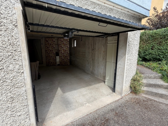En annexes, le bien dispose d’un garage avec porte automatisée et accès direct à la copropriété, d’une cave privative en sous-sol et de combles (galetas)