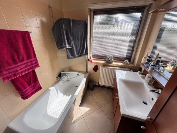 La partie nuit propose deux grandes chambres, une salle de bains avec baignoire, ainsi qu’un WC séparé avec lave-mains.