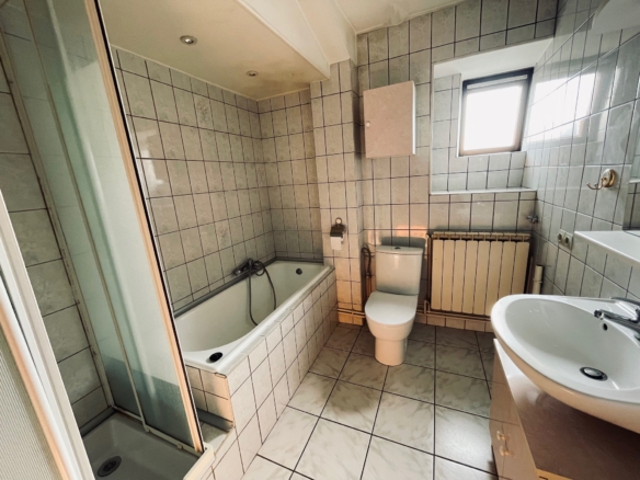 L’espace nuit comprend deux chambres aux belles proportions dont une avec placards intégrés et une salle de bain fonctionnelle, offrant le choix entre baignoire et douche.