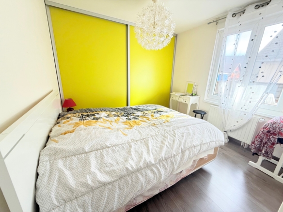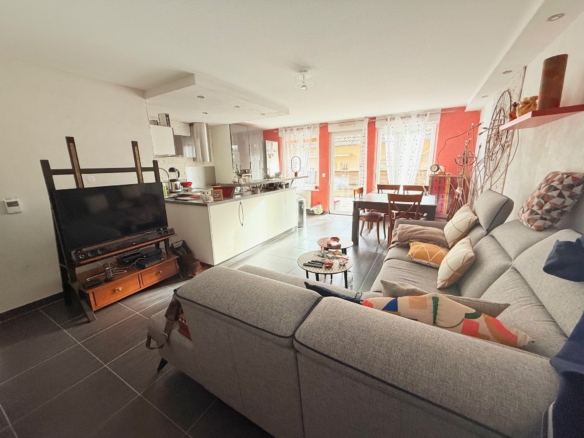 Dès l’entrée, laissez-vous séduire par un bel espace de vie lumineux, où la cuisine équipée s’ouvre sur un salon-séjour convivial. L’espace nuit comprend deux chambres cosy dont une avec placards intégrés, une salle d’eau élégante et un WC séparé pour plus de confort.