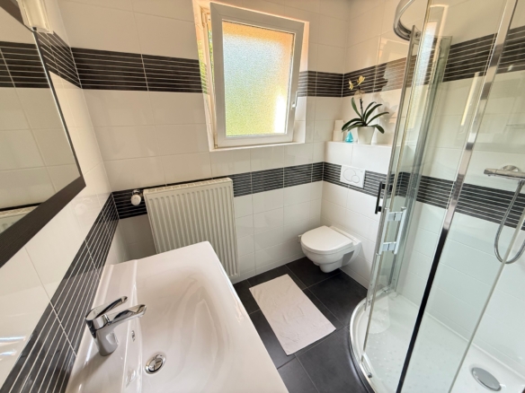 Côté confort, le bien est équipé d’un chauffage au gaz de ville, avec une chaudière Viessmann installée en 2020. L’isolation extérieure a été réalisée avec une épaisseur de 10 cm, et les fenêtres en triple vitrage Lutz, posées en 2019, garantissent une excellente performance thermique et acoustique.