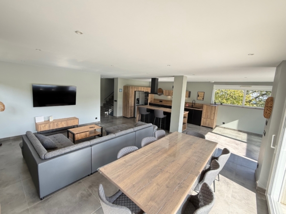 Le chauffage au sol par pompe à chaleur assure un confort thermique optimal, complété par la climatisation pour un bien-être en toute saison. Volets électriques.