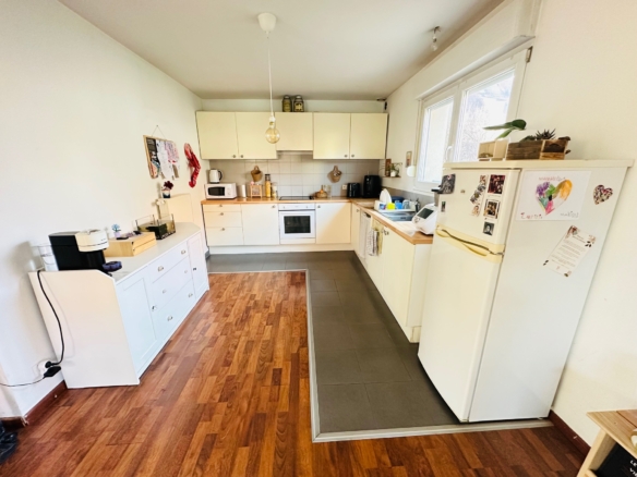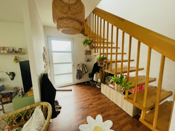 Dès l’entrée, vous serez séduit par un grand salon-séjour lumineux, réchauffé par un poêle à bois, créant une atmosphère cosy et chaleureuse. La cuisine équipée pratique s’ouvre sur l’espace de vie.